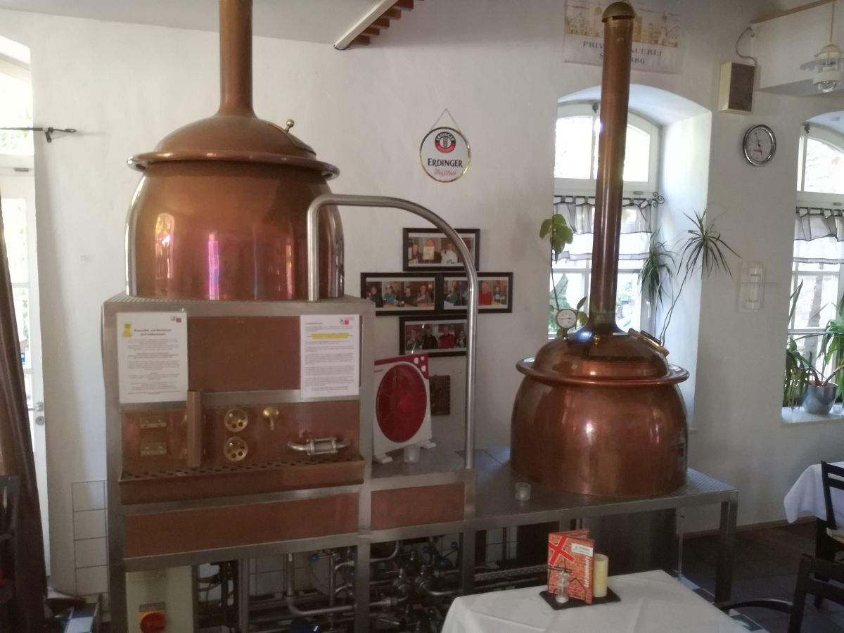 Gebraut wird auf einem Sudhaus von Beroplan. 4 hl werden pro Doppelsud gebraut, im Jahr kommen so ca. 40 bis 60 hl zusammen. Da bedauerlicherweise der Läuterbottich derzeit nicht funktionstüchtig ist, steht nur die Sudpfanne zum Brauen zur Verfügung. Dies bedeutet, dass man derzeit auf Malzextrakt angewiesen ist, da das Einmaischen mit Malz nicht möglich ist.