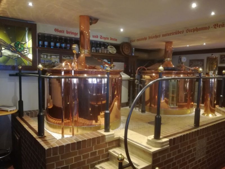 Gebraut wird auf einer kupfernen Brauanlage von BAM aus Freising, welche mitten im Gastronomiebereich steht. 15 hl werden hier pro Sud gebraut, pro Jahr kommen so bis zu 1800 hl zusammen. Die Brauanlage ist so alt wie das Brauhaus selber, da muss hier noch so manche Arbeit von Hand erledigt werden. Vergoren wird im Keller in offenen Gärbottichen.Rustikal sieht es im inneren der Brauerei aus. Betritt man diese, läuft man schon fast auf die mittig stehende Theke zu, an der der begehrte Gerstensaft frisch gezapft wird. Schräg hinter der Theke befindet sich die kupferne Brauanlage, welche man von verschiedenen Plätzen aus immer im Blick haben kann. An massiven Holztischen verschiedenster Größe kann man sitzen und sich am frisch gebrauten laben. Aber nicht nur der Durst wird hier gestillt, auch um den Hunger wird sich hier liebevoll gekümmert. Fleischliebhaber und Vegetarier werden hier gleichermaßen satt. Die Zutaten für die Speisen kommen aus dem Münsterland, welches per Siegel zertifiziert ist.