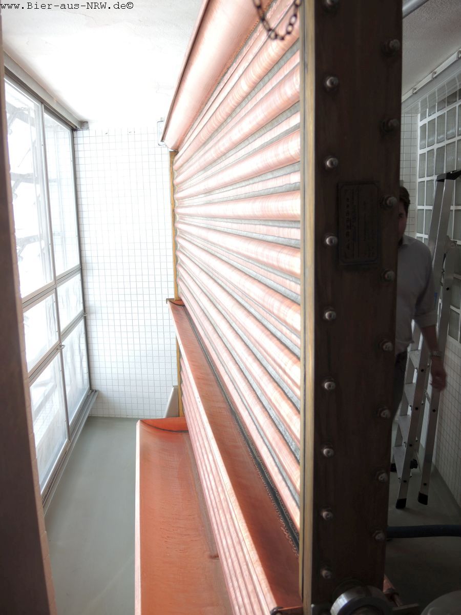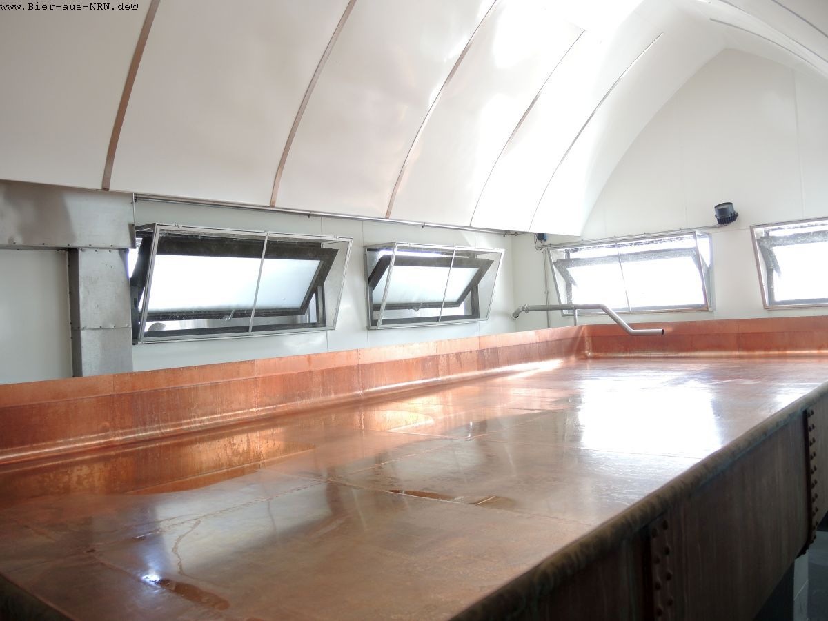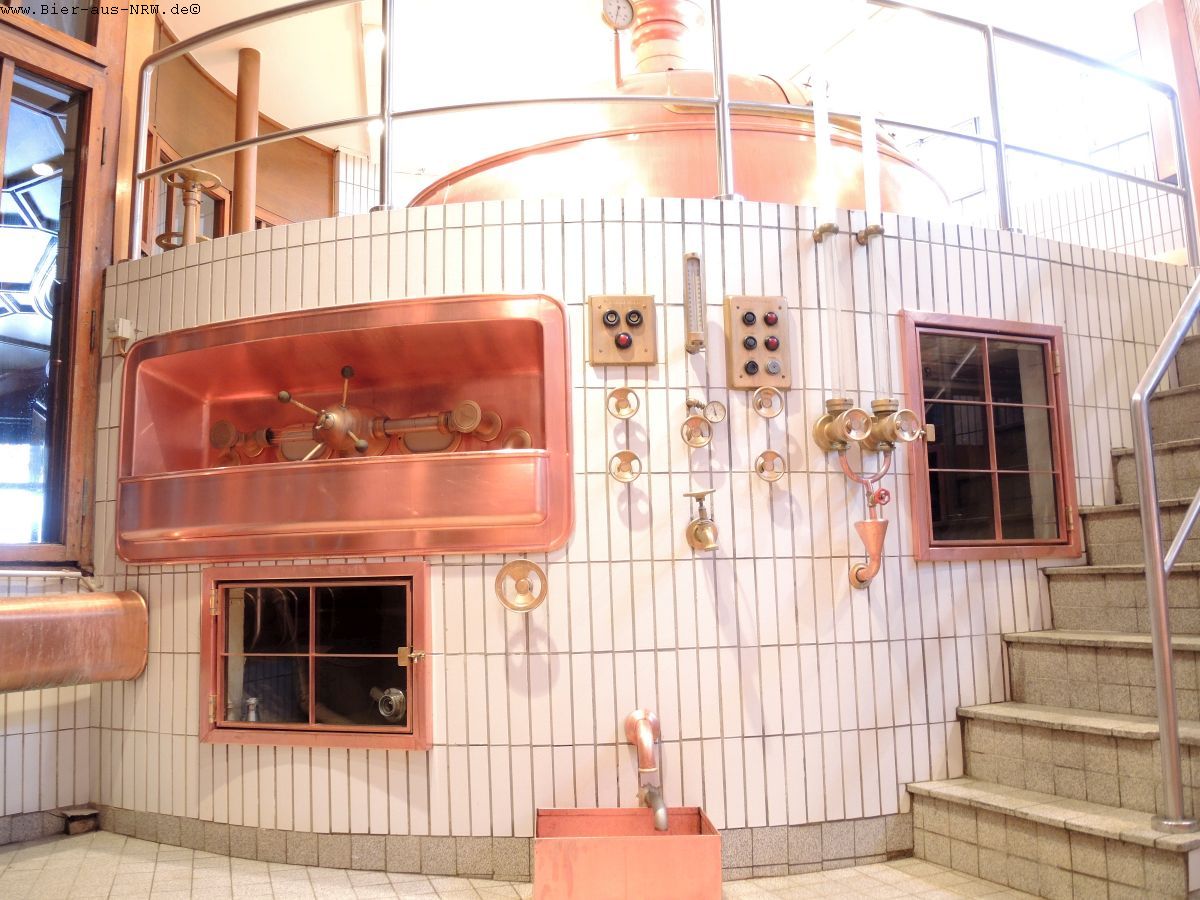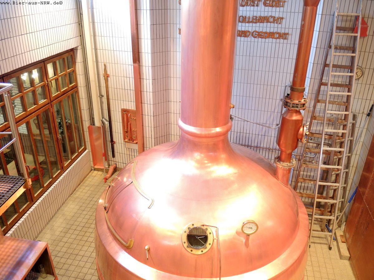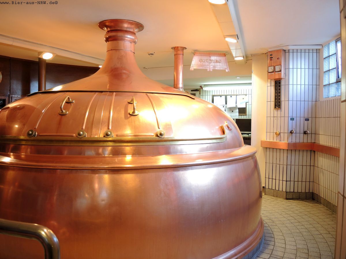 Gebraut wird auf einem kupfernen Sudhaus der Firma Huppmann aus den 1990er Jahren. Ganz klassisch wird hier auch noch mit Kühlschiff und Berieselungskühler gearbeitet. Moderne Technik wird dort eingesetzt wo sie hilft, wo es jedoch an den Charakter des Bieres geht wird weiterhin von Hand gearbeitet. Da ist man im Hause Uerige kompromisslos. Pro Sud werden ca. 75 hl Alt gebraut, im Jahr kommen etwa 20.000 hl zusammen.
