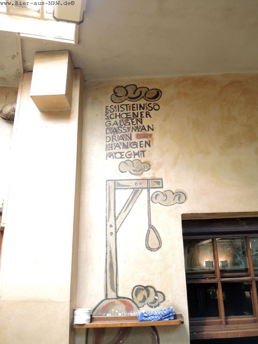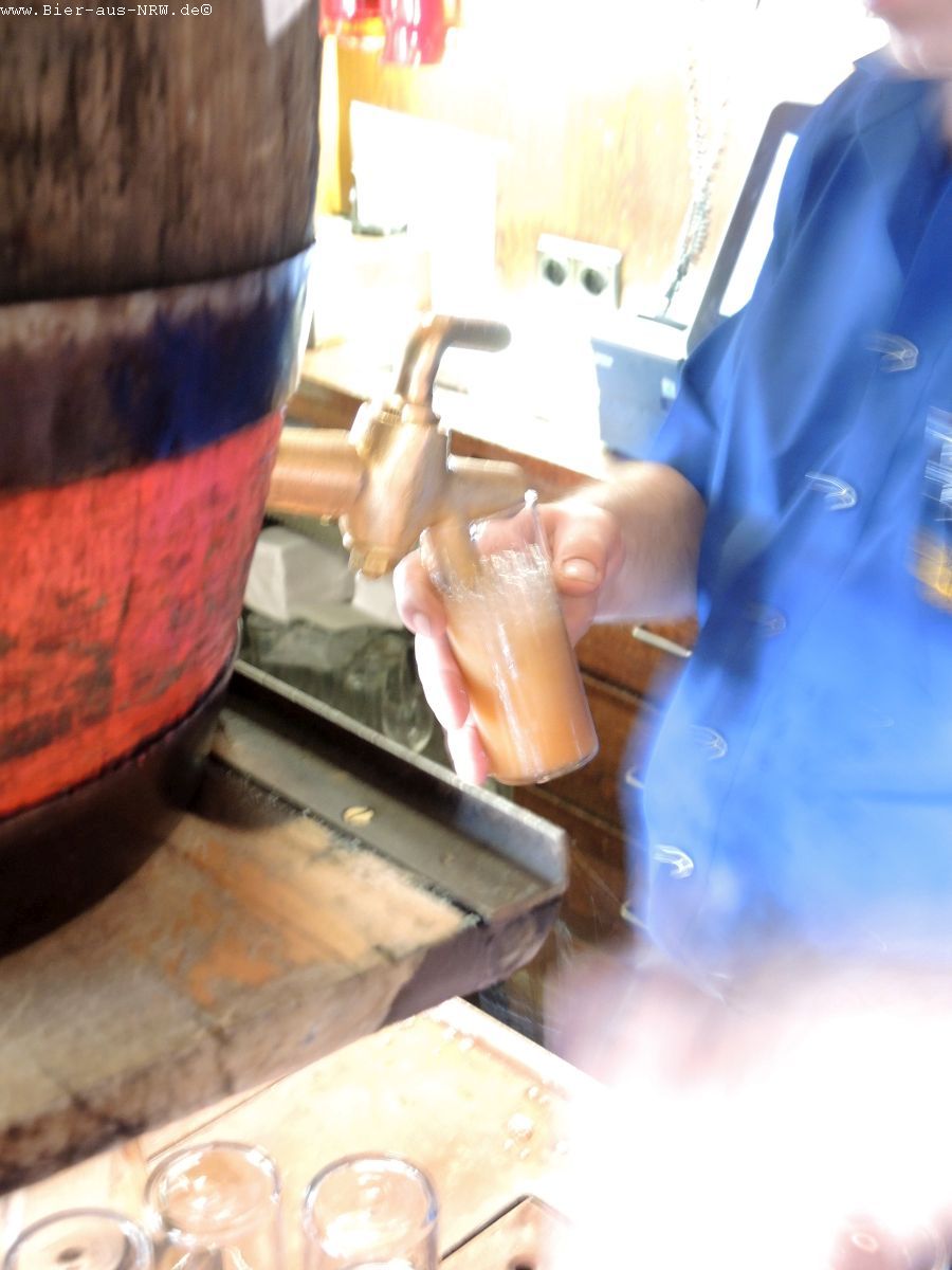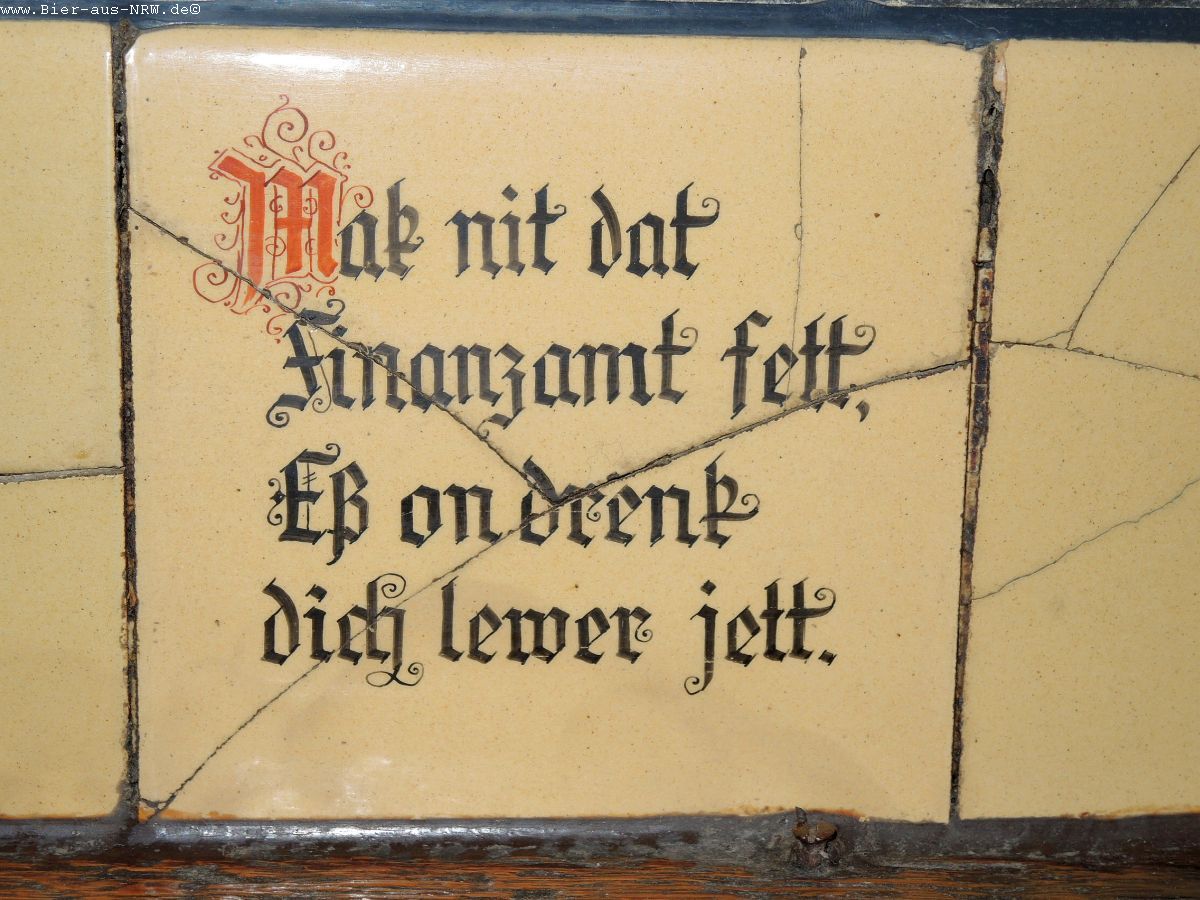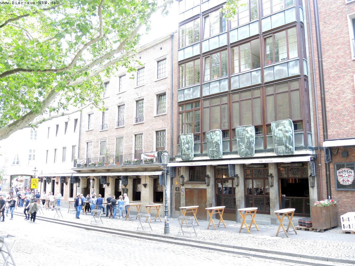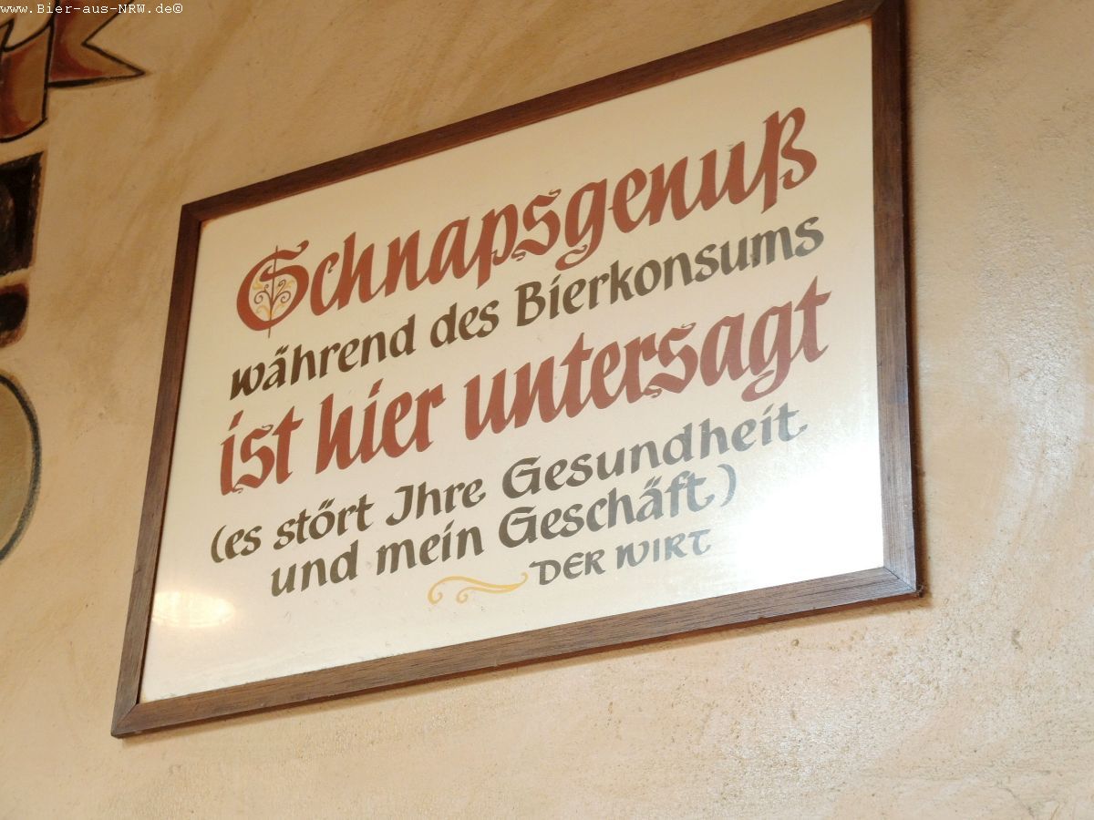 Wer die Brauerei zum ersten Mal betritt kommt sich vielleicht wie in einem Labyrinth vor. Im Laufe der vergangenen Jahre wurde immer, wenn es sich ergab, ein Nachbargebäude gekauft und in die Brauerei integriert. Zuletzt das Stickum. So ergibt sich durchaus der Eindruck eines Labyrinths. Ein paar Alt später kennt man sich jedoch bestens aus in dem Gemäuer. Holzvertäfelt ist es. An langen Holztischen kann man in großen wie in kleinen Räumen sitzen, sein Alt genießen und kommt mit seinen Mitmenschen ins Gespräch. Je nachdem wo man seinen Platz gefunden hat, hat man die Brauanlage im Blick, oder man kann dem Zappes bei der Arbeit beobachten. Hier wird stets aus dem Holzfass gezapft, eine Zapfanlage sucht man vergebens.